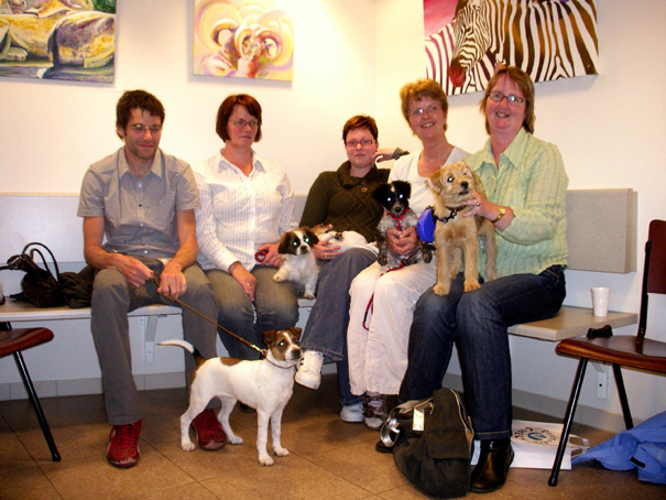 Tijdens de pauze kon er lekker gespeeld worden met andere pups en kregen de eigenaren een rondleiding door de praktijk, zodat ze een kijkje achter de schermen konden nemen. Zo was er een “rariteitenkabinet”: wormen, teken, vlooien en andere enge beestjes in potjes te zien. De operatiekamer kon bezichtigd worden en er werd uitleg gegeven over de bloedanalyseapparatuur en gebitsreiniging. Tijdens de rondleiding werden veel praktische tips aangereikt, zoals het gebruik van een tekenhaakje en het nakijken van oren en pootjes op grasaren en ongedierte.