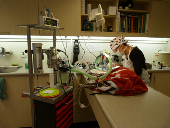 Tijdens de operatie wordt gebruik gemaakt van gasanesthesie. Dit verhoogt de veiligheid voor uw huisdier tijdens de operatie en geeft een sneller herstel uit de narcose.